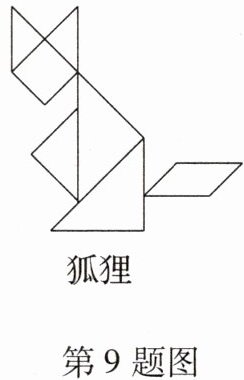 9. 七巧板是我国古代人民创造的益智游戏. 如图是由一副七巧板组成的一个“狐狸”,组成这个图案的简单几何图形有