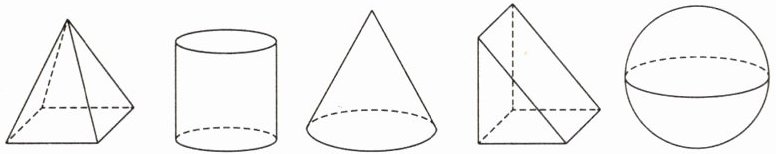 16. 如图的立体图形中,其中表面包含一类平面图形的有哪些几何体?表面包含两类平面图形的有哪些几何体?