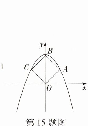 15. (2023·广东中考) 如图,抛物线 $ y = ax^2 + c $ 经过正方形 $ OABC $ 的三个顶点 $ A $,$ B $,$ C $,点 $ B $ 在 $ y $ 轴上,则 $ ac $ 的值为 ( )