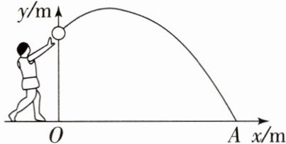 8. (2023·湖北宜昌中考)如图,一名学生推铅球,铅球行进高度 $ y $ (单位:m)与水平距离 $ x $ (单位:m)之间的关系是 $ y = -\frac{1}{12}(x - 10)(x + 4) $,则铅球推出的距离 $ OA = $