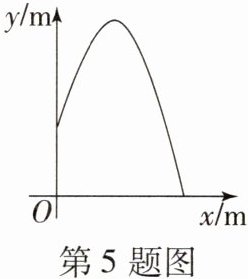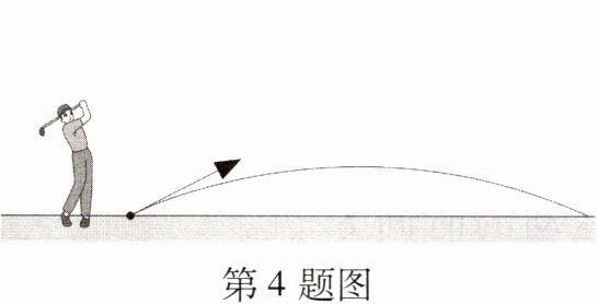 4. (教材改编题)如图,以一定的速度将小球沿与地面成一定角度的方向击出时,小球的飞行路线是一条抛物线.若不考虑空气阻力,小球的飞行高度h(单位:m)与飞行时间t(单位:s)之间具有函数关系$:h= -5t^2+20t,$则当小球飞行高度达到最高时,飞行时间t=