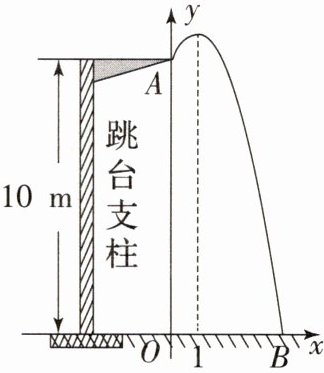 6. 一名运动员在10m高的跳台进行跳水,身体(看成一点)在空中的运动轨迹是一条抛物线,运动员离水面OB的高度y(m)与离起跳点A的水平距离x(m)之间的函数关系如图所示,运动员离起跳点A的水平距离为1m时达到最高点,当运动员离起跳点A的水平距离为3m时离水面的距离为7m.