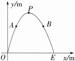 3. 现要修建一条隧道,其截面为抛物线型,如图所示,线段OE表示水平的路面,以O为坐标原点,以OE所在直线为x轴,以过点O垂直于x轴的直线为y轴,建立平面直角坐标系.根据设计要求:OE= 10m,该抛物线的顶点P到OE的距离为9m.