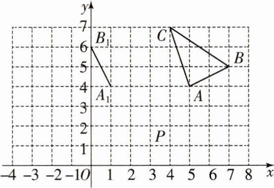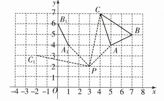 11. 如图,在直角坐标系中,线段$ A_1B_1 $是将△ABC 绕着点 P(3,2)逆时针旋转一定角度后得到的$△A_1B_1C_1 $的一部分,则点 C 的对应点$ C_1 $的坐标是( )