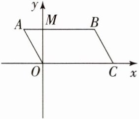 ∴C(4,0),B(3,2),M(0,2),BM=3,AB//x轴.如图,将平行四边形OABC绕点O分别顺时针、逆时针旋转90°后,由旋转得OM=OM₁=OM₂=2,∠AOA₁=∠AOA₂=90°,BM=B₁M₁=B₂M₂=3,A₁B₁⊥x轴,A₂B₂⊥x轴,