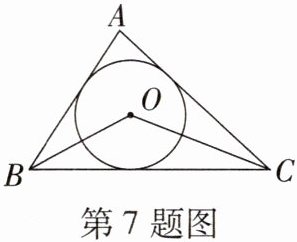 7. (教材改编题)如图,△ABC中,∠A= 80°,点O是△ABC的内心,则∠BOC的度数为(