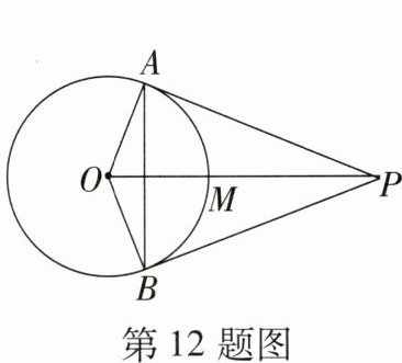 12. 如图,已知PA,PB是⊙O的两条切线,A,B为切点,线段OP交⊙O于点M.给出下列四种说法:①PA= PB;②OP⊥AB;③四边形OAPB有外接圆;④M是△AOP外接圆的圆心.其中正确说法的个数是(