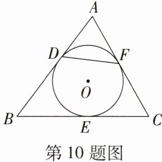 10. 如图,△ABC中,∠A= 60°,BC= 6,它的周长为16.若⊙O与BC,AC,AB三边分别切于点E,F,D,则DF的长为(