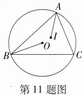 11. (2023·山东聊城中考)如图,点O是△ABC外接圆的圆心,点I是△ABC的内心,连接OB,IA.若∠CAI= 35°,则∠OBC的度数为(