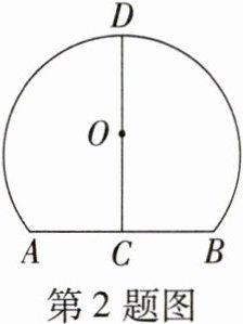 2. 如图是一个隧道的横截面,它的形状是以点O为圆心的圆的一部分,如果C是⊙O中弦AB的中点,CD经过圆心O交⊙O于点D,并且AB = 4 m,CD = 6 m,则⊙O的半径为______ m.