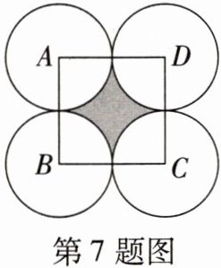 7. (教材改编题)如图,正方形$ABCD的边长是4$,分别以点$A$,$B$,$C$,$D$为圆心,$2$为半径作圆,则图中阴影部分的面积是
