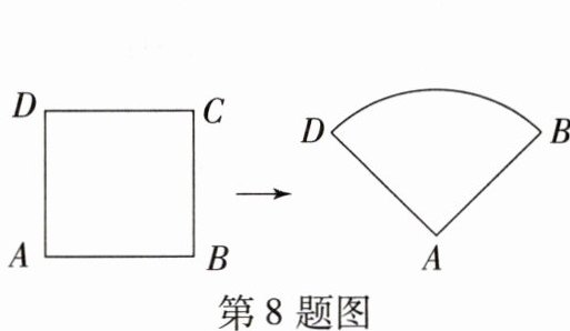 8. 数学课上,老师将如图边长为$1的正方形铁丝框变形成以A$为圆心,$AB$为半径的扇形(铁丝的粗细忽略不计),则所得扇形$DAB$的面积是