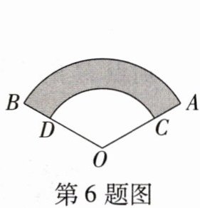 6. (教材改编题)如图,某小区要绿化一扇形$OAB$空地,准备在小扇形$OCD$内种花,在其余区域内(阴影部分)种草,测得$\angle AOB = 120^{\circ}$,$OA = 15\mathrm{m}$,$OC = 10\mathrm{m}$,则种草区域的面积为 (