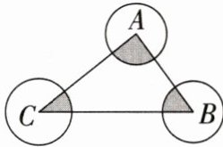 9. 如图,$\odot A$,$\odot B$,$\odot C$两两不相交,且半径都等于$2$,求图中三个扇形(即阴影部分)的面积之和。