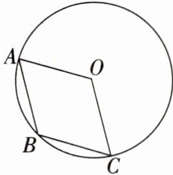 4. 如图,$A$,$B$,$C三点在半径为1的\odot O$上,四边形$ABCO$是菱形,求$\overset{\frown}{AC}$的长。