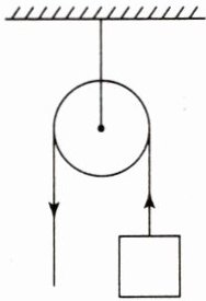 3. (跨学科融合题)如图,用一个半径为$6\mathrm{cm}$的定滑轮拉动重物上升,滑轮旋转了$120^{\circ}$,假设绳索粗细不计,且与滑轮之间没有滑动,则重物上升了