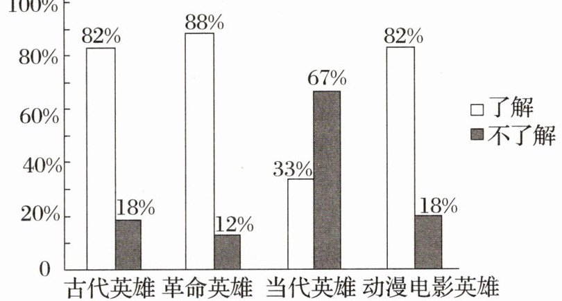 (1)示例:当前,中学生对古代英雄、革命英雄、动漫电影英雄的了解较多,对当代英雄了解较少。