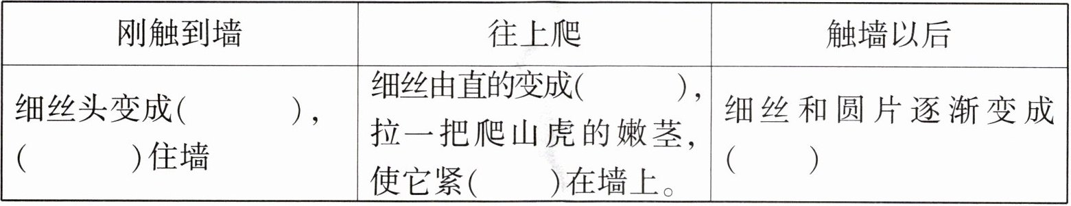 。5. 从选文中找出关键词语把表格补充完整,了解爬山虎是怎样往上爬的。