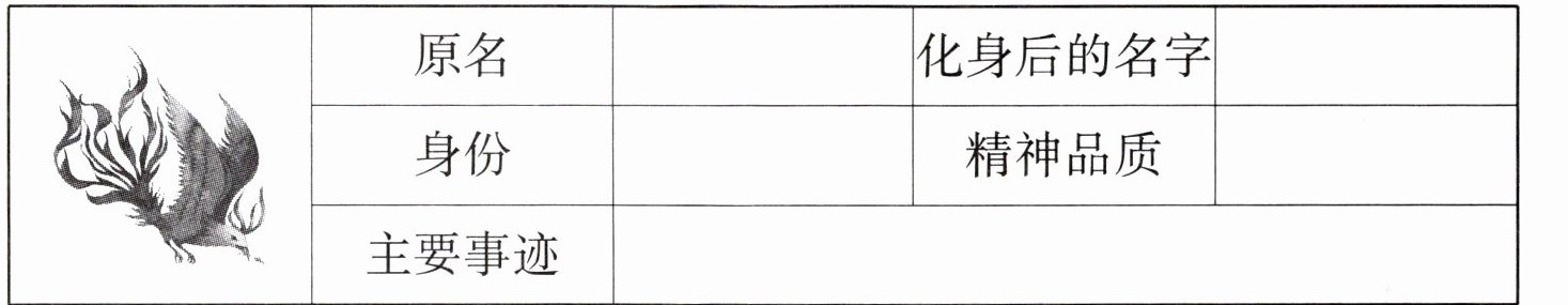 )木石→( 堙 )于东海2. 根据课文内容,为精卫制作人物卡片。