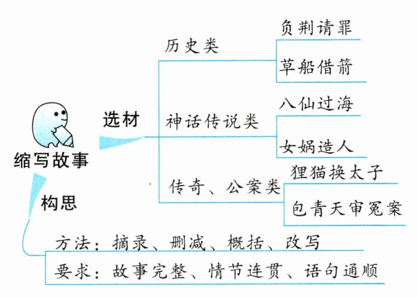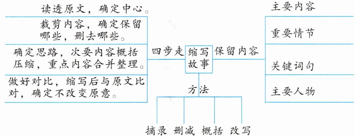 理思路:仔细读下面的示意图,学习缩写故事的方法。