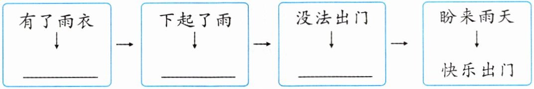 1.担心 盼望 2.雨珠 比喻 雨后的景色 盼 3.D 4.不矛盾。"我"盼望下雨是因为"我"想穿上新雨衣;但是下雨时"我"又不能出门,不能穿上新雨衣,于是"我"希望雨停下来,留到明天再下,这都突出表现了"我"对穿上新雨衣的期盼。5.示例:妈妈要送我一份生日礼物。这天回到家,妈妈对我说:"你的快递已发货。"哇,我太开心了!妈妈送给我的生日礼物是什么呢?是无人机、乐高,还是一种我从没见过的东西呢?……我想啊想,猜啊猜……晚上睡觉的时候,我躺在床上辗转反侧,心里一直默念着:"快递快点到,快递快点到……"