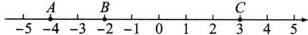 (2)A,B,C三点所表示数的相反数分别为4,2,-3,所以-3<2<4.