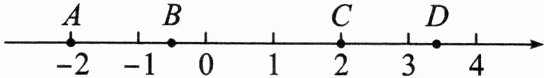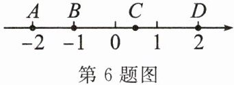 6. 如图,数轴上有 $ A $,$ B $,$ C $,$ D $ 四个点,其中表示互为相反数的两个点是(