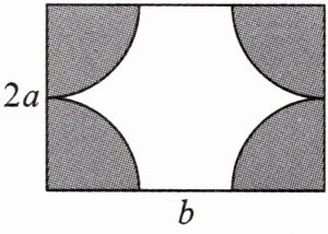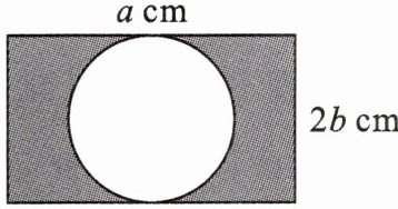 5. 如图,已知长方形铁板的长为$a$ cm,宽为$2b$ cm,在中心挖去一个圆面,用含$a$,$b$的式子表示阴影部分的面积为