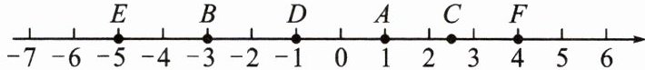 4.(教材第 11 页练习第 1 题变式)如图所示,指出数轴上 $A$,$B$,$C$,$D$,$E$ 分别表示什么数。