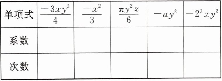 6. (开放性试题)写出一个含有两个字母、系数为负数、次数为3的单项式: