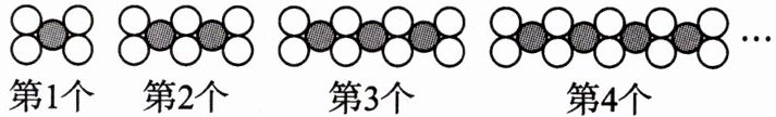 11. (山西省中考)如图是一组有规律的图案,它由若干个大小相同的圆片组成。第$1个图案中有4$个白色圆片,第$2个图案中有6$个白色圆片,第$3个图案中有8$个白色圆片,第$4个图案中有10$个白色圆片,…,依此规律,第$n$个图案中有