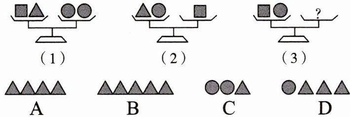 11.(新背景)设■,▲,●分别表示三种不同的物体,如图,前两架天平保持平衡,如果要使第三架天平也平衡,那么以下方案不正确的是(