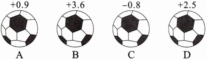 11. (新情境)如图,检测$4$个足球,其中超过标准质量的克数记为正数,不足标准质量的克数记为负数,从轻重的角度看,最接近标准质量的是(