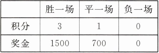 8. 某足球协会举办了一次足球赛,其记分规则及奖励方案(每人)如下表: