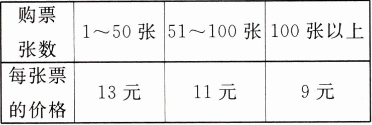 (3)如果按照实际人数买票,则48人共需48×13=624(元),而购51张票只需51×11=561(元),所以买51张票才最省钱.
