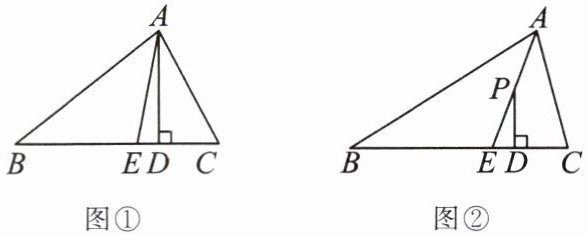 (3)如图②,在线段 $AE$ 上任取一点 $P$,过点 $P$ 作 $PD\perp BC$ 于点 $D$,$\angle C - \angle B = 40^{\circ}$,求 $\angle EPD$ 的度数。