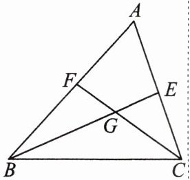 解:因为$BE$,$CF$是角平分线,所以$\angle GBC=\frac{1}{2}\angle ABC$,$\angle GCB = \frac{1}{2}\angle ACB$。