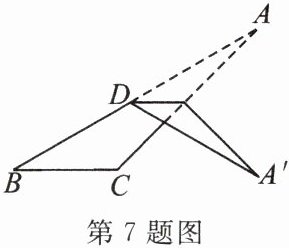 7. 如图,将 $ \triangle ABC $ 沿着平行于 $ BC $ 的直线折叠,使点 $ A $ 落到点 $ A' $ 处. 若 $ \angle C = 135° $,$ \angle A = 15° $,则 $ \angle A'DB $ 的度数为