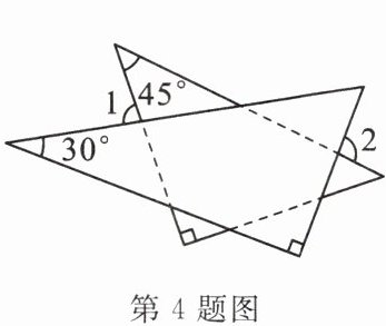 4. 将一副三角板按如图所示的方式摆放. 若 $ \angle 1 = 80° $,则 $ \angle 2 = $ (