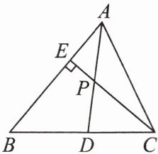 1. 如图,已知 $ AD $ 是 $ \triangle ABC $ 的角平分线,$ CE $ 是 $ \triangle ABC $ 的高,$ AD $ 与 $ CE $ 相交于点 $ P $,$ \angle BAC = 66° $,$ \angle BCE = 40° $,求 $ \angle ADC $ 和 $ \angle APC $ 的度数.