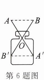 6. (教材第 34 页第 1 题变式)如图,$AA'$,$BB'$表示两根长度相同的木条,若点 $O$ 是 $AA'$,$BB'$的中点,经测量 $AB = 6cm$,则容器的内径 $A'B'$的长为(