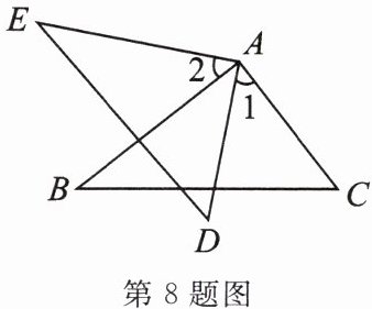 8. 如图,$AC = AD$,$AE = AB$,要使$\triangle ABC\cong\triangle AED$,应添加的条件是(