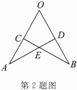 2. (湖南省中考改编)如图,$OA = OB$,要想用“SAS”证明$\triangle AOD\cong\triangle BOC$,还需添加一个条件: