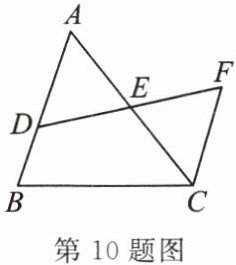 10. (教材第46页第17题变式)如图所示,已知D是△ABC的边AB上一点,DF交AC于点E,DE = EF,FC//AB。若BD = 2,CF = 5,则AB的长为