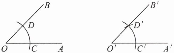 1. 如图是用直尺和圆规作一个角等于已知角的示意图,则说明$∠A'O'B' = ∠AOB$的依据是 (