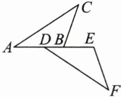 7. 如图,$\triangle ABC$的顶点 A,B 和$\triangle DEF$的顶点 D,E 在同一条直线上,且$∠A= ∠EDF,∠C= ∠F$,请再添加一个条件,使得$BC= EF$,并说明理由.