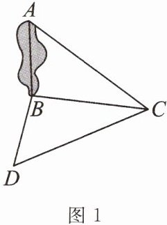 2. [情境]如图 1,为了测量池塘两端 $ A,B $ 之间的距离,在地面上选取可以直接到达点 $ A $ 和点 $ B $ 的点 $ C $,连接 $ AC,BC $,再在地面上选取可以直接到达点 $ B $ 和点 $ C $ 的点 $ D $,连接 $ DB,DC $,使 $ CB $ 平分 $ \angle ACD,AC = DC $(点 $ A,B,C,D $ 在同一平面内),此时测量出线段 $ BD $ 的长便是池塘两端 $ A,B $ 之间的距离.