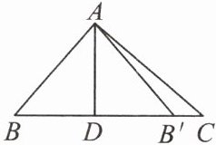 7. 如图所示,在 Rt△ABC 中,∠BAC = 90°,∠B = 50°,AD ⊥ BC,垂足为 D,△ADB 与△ADB′关于直线 AD 对称,点 B 的对称点是点 B′,则∠CAB′的度数为
