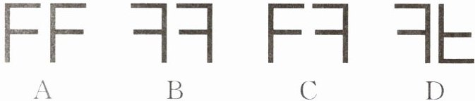 4. 下列每对文字图形中,能看成关于虚线对称的有