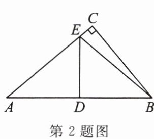 2. (攀枝花市中考)如图,在△ABC中,∠A= 40°,∠C= 90°,线段AB的垂直平分线交AB于点D,交AC于点E,则∠EBC的度数是
